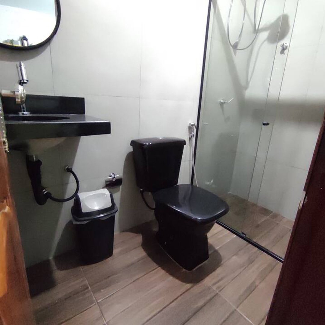 A casa está localizada em bairro residencial (conjunto), em frente a uma praça arborizada, com fácil acesso ao centro da cidade. O imóvel possui dois andares e conta atualmente com 5 quartos disponíveis. O acesso é feito por self check-in com fechadura digital.
