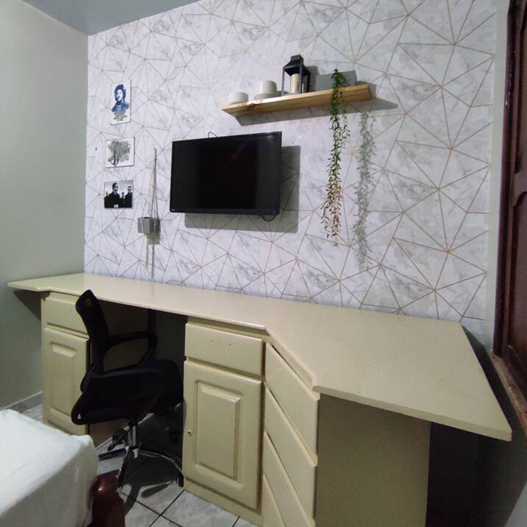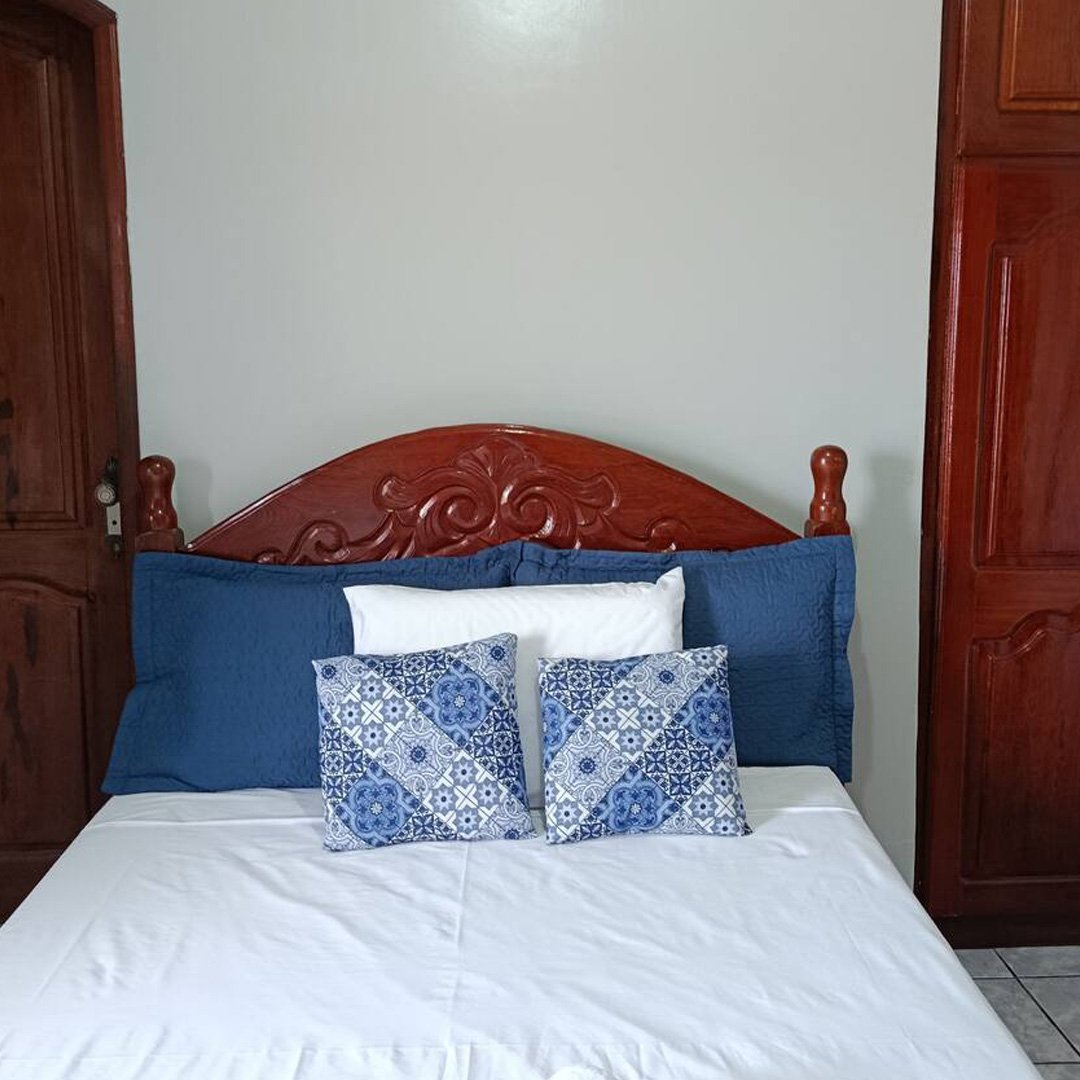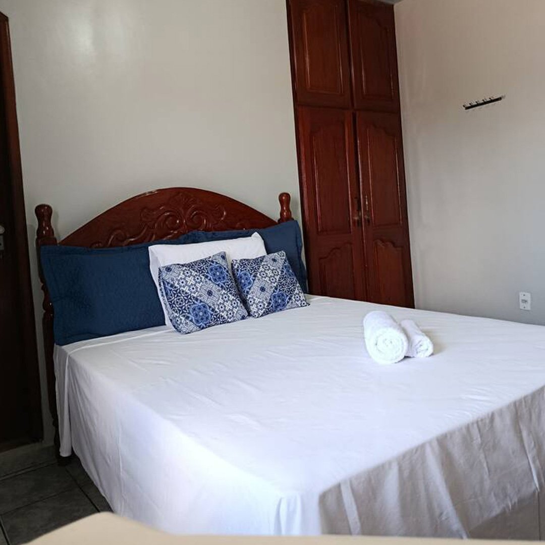 Suíte confortável e bem localizada, próxima ao aeroporto e shoppings, situada no segundo andar. Conta com uma cama de casal, banheiro privativo com chuveiro elétrico, ar-condicionado, cortina blackout e janela grande com tela pra mosquito. O espaço dispõe ainda de mesa de trabalho, um cabide, armário e espelho grande. Valor para 2 hóspede.