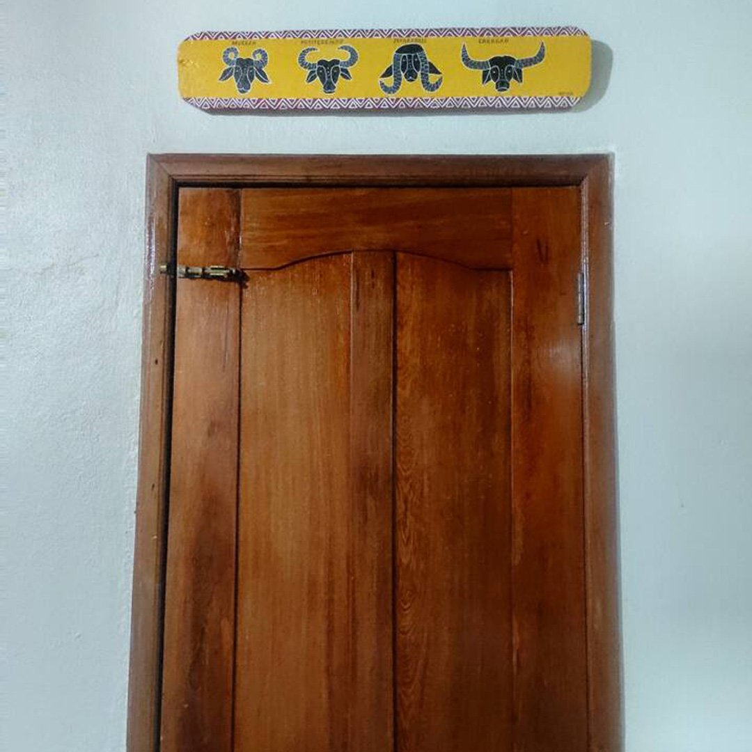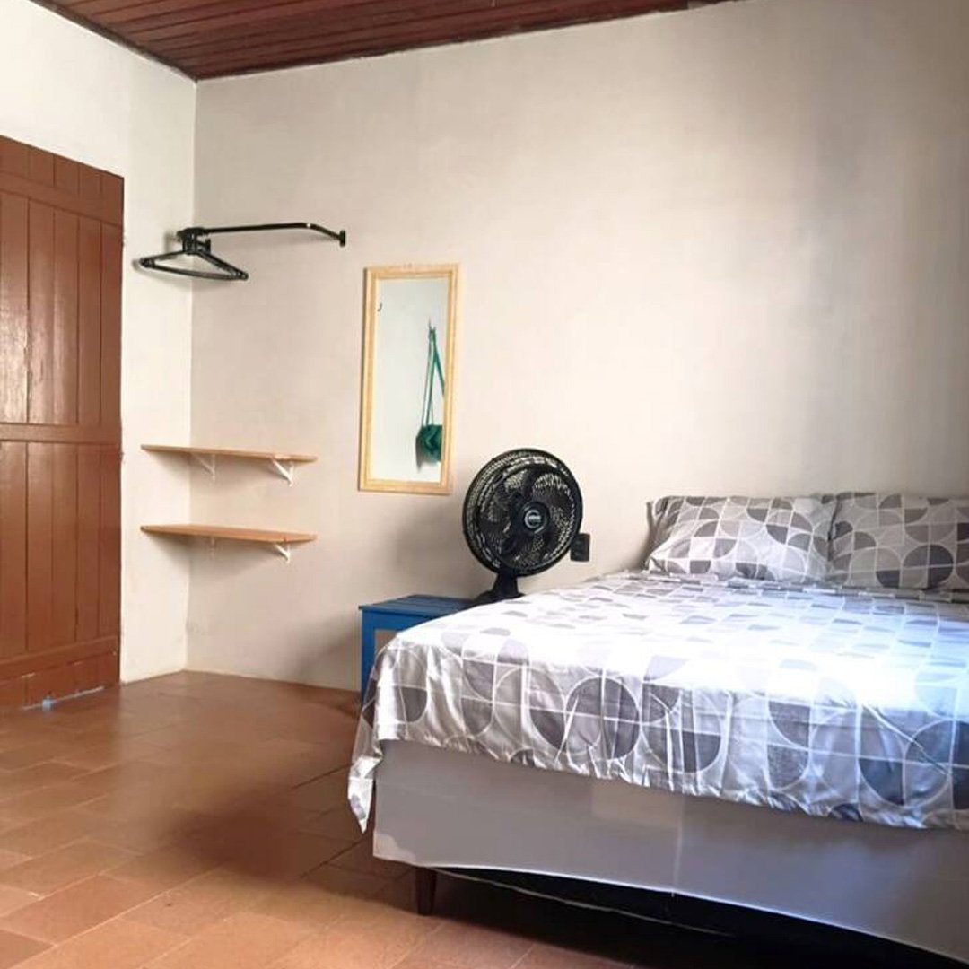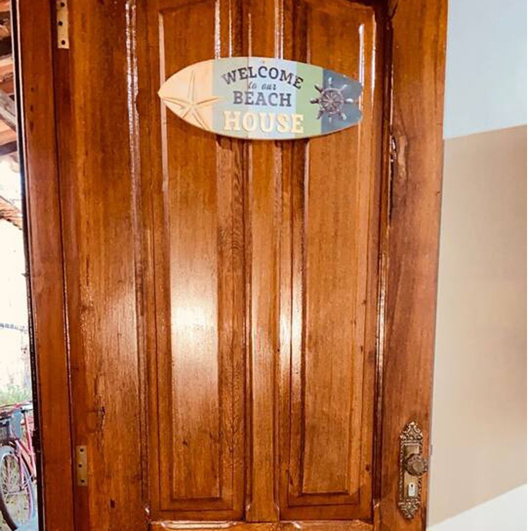 A sala é decorada com tema de praia e possui dois sofás-cama de solteiro (acomoda até 4 pessoas), perfeita para momentos de descanso. Um corredor longo e decorado conecta os ambientes. O imóvel dispõe de dois quartos, sendo uma suíte com banheiro exclusivo e cama de casal e cama de solteiro, espelho, ventilador, cabideiro, e um quarto ventilado também com cama de casal, espelho, ventilador, cabideiro.